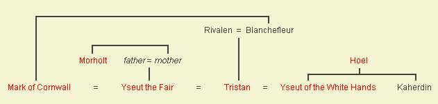 Ik heb vier versies van de Tristanroman gelezen, waaronder een door de Duitser Gottfried von Strassburg, in 1210. Hoewel sommige namen anders werden gespeld dan in de Franse versie, volgde het min of meer de versie geschreven door Thomas. Dus heb ik geen stamboom gemaakt van Gottfried.