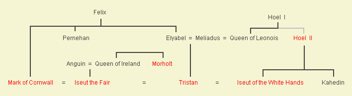 Ik heb verscheidene verschillende stambomen opgesteld om rekening te houden met verscheidene verschillende werken van de roman van Tristan en Isolde die ik heb gelezen.
