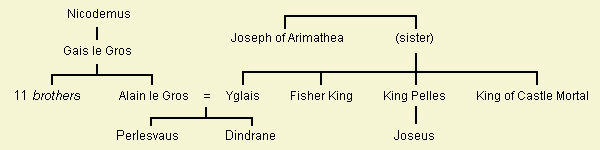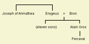 Bovenstaande genealogie is ontleend aan het Le Haut Livre du Graal (Hoge Geschiedenis van de Graal), ook bekend als Perlesvaus (ca. 1210). Perlesvaus was een andere naam voor Perceval. De monniken van Glastonbury schreven waarschijnlijk de Perlesvaus. Glastonbury was ooit een eiland te midden van een moeras. Sommigen hebben de Glastonbury Tor geidentificeerd als Avalon en de plaats waar Arthur samen met Guinevere begraven lag.