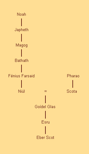 Fenius Farsaid was een kleinzoon van Magog, zoon van Jafeth, die leefde in de tijd van de Toren van Babel, terwijl Niul, zijn zoon, en Goidel Glas, zijn kleinzoon, tijdgenoten waren van Abraham en Mozes.