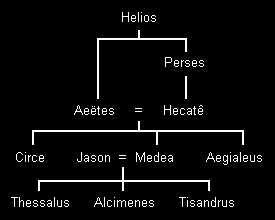 Hieronder staat de alternatieve genealogie voor de familie van Helius. Hierbij gebruikte ik Diodorus Siculus, in zijn werk genaamd de Bibliotheek van Historie, als bron om deze stamboom samen te stellen.