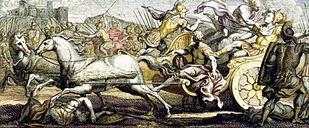 Op bevel van de strijder-held Achilles dwingen de Griekse soldaten Agamemnon Chryseïs terug te geven om Apollo te verzoenen en de pestilentie te beëindigen. Maar wanneer Agamemnon uiteindelijk met tegenzin instemt haar terug te geven, neemt hij in haar plaats Briseïs, Achilles’ eigen oorlogsbuitconcubine. Zich onteerd voelend trekt Achilles woedend zichzelf en zijn Myrmidon-krijgers terug uit de Trojaanse Oorlog.