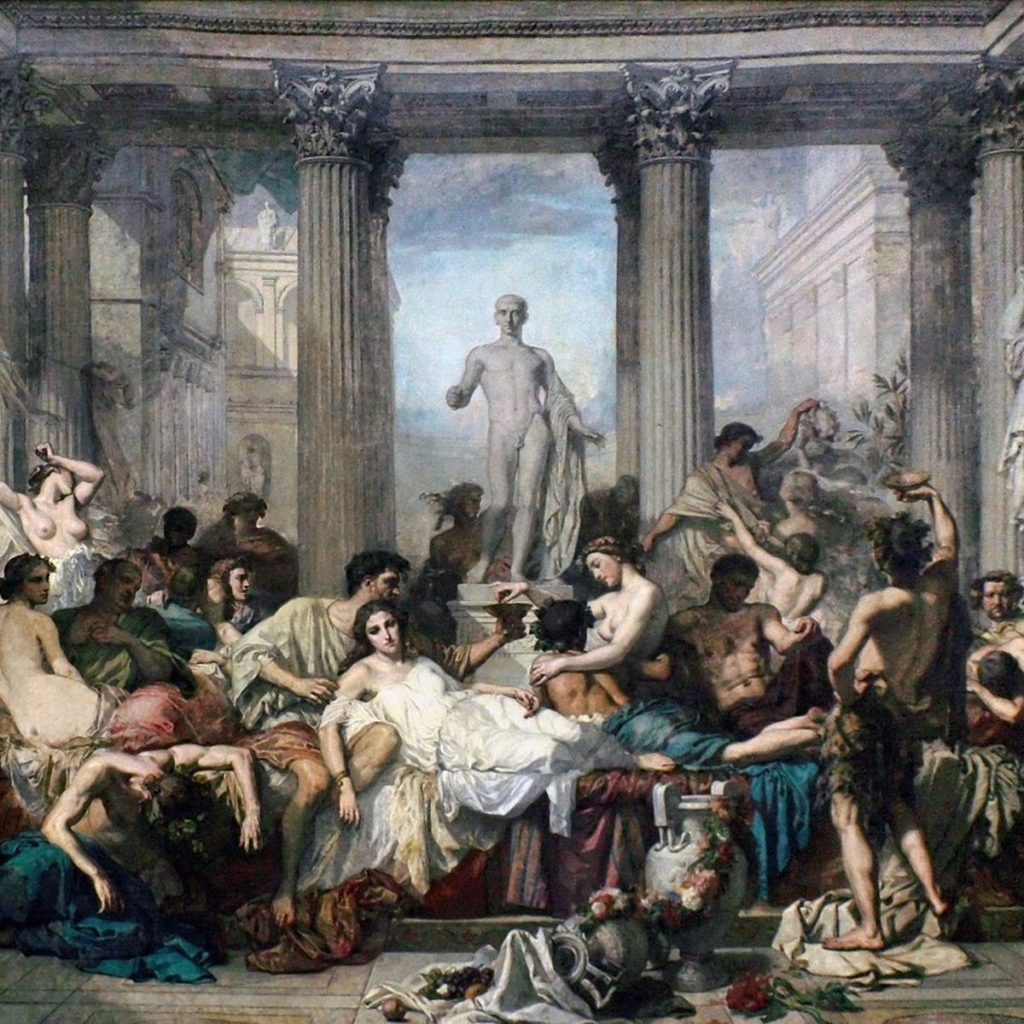 Romeinen in hun Decadentie, schilderij dat de thema's van Juvenalis' satires illustreert