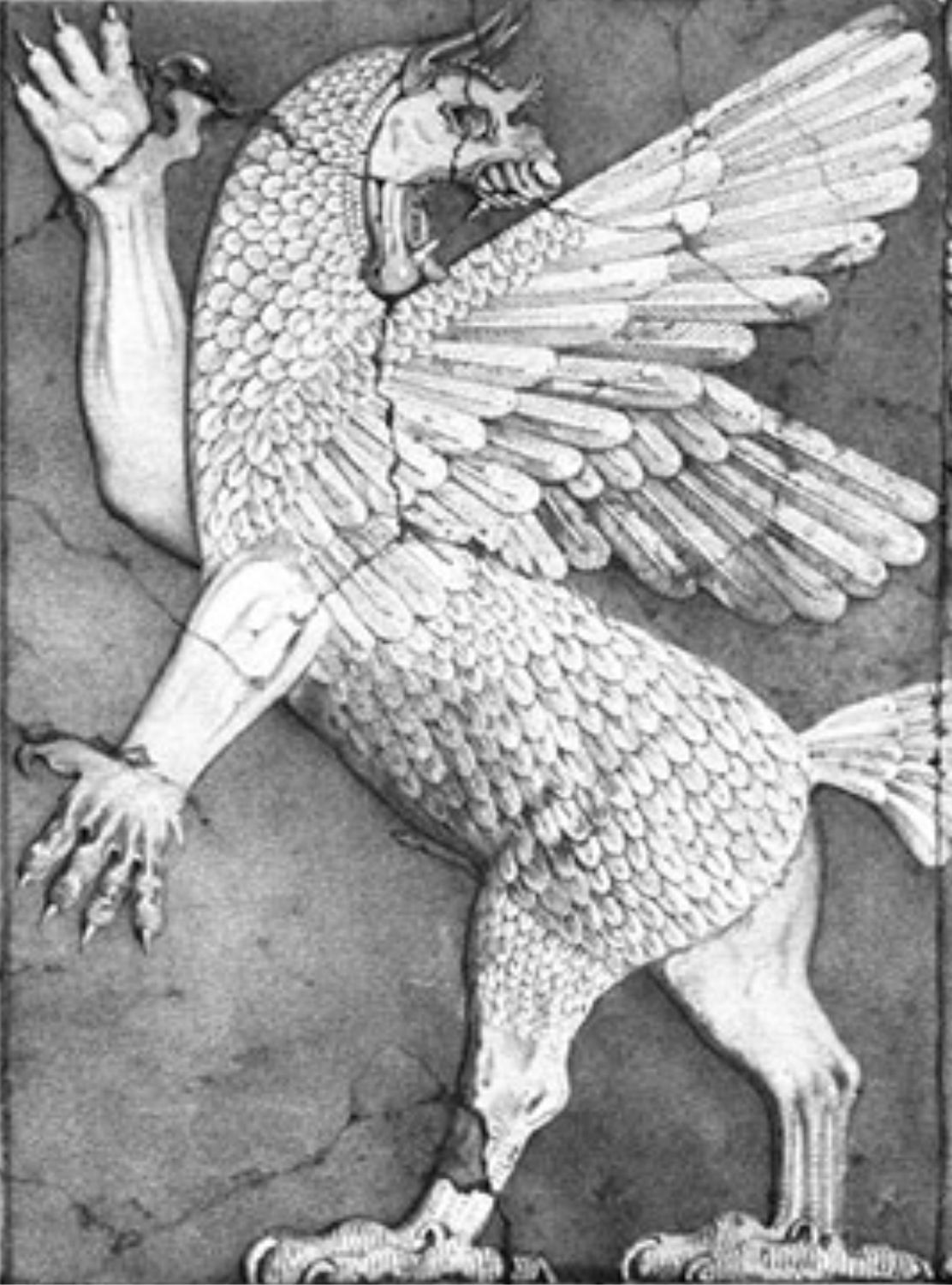- Een angstaanjagend uiterlijk – vaak afgebeeld als een adelaar met de kop van een leeuw