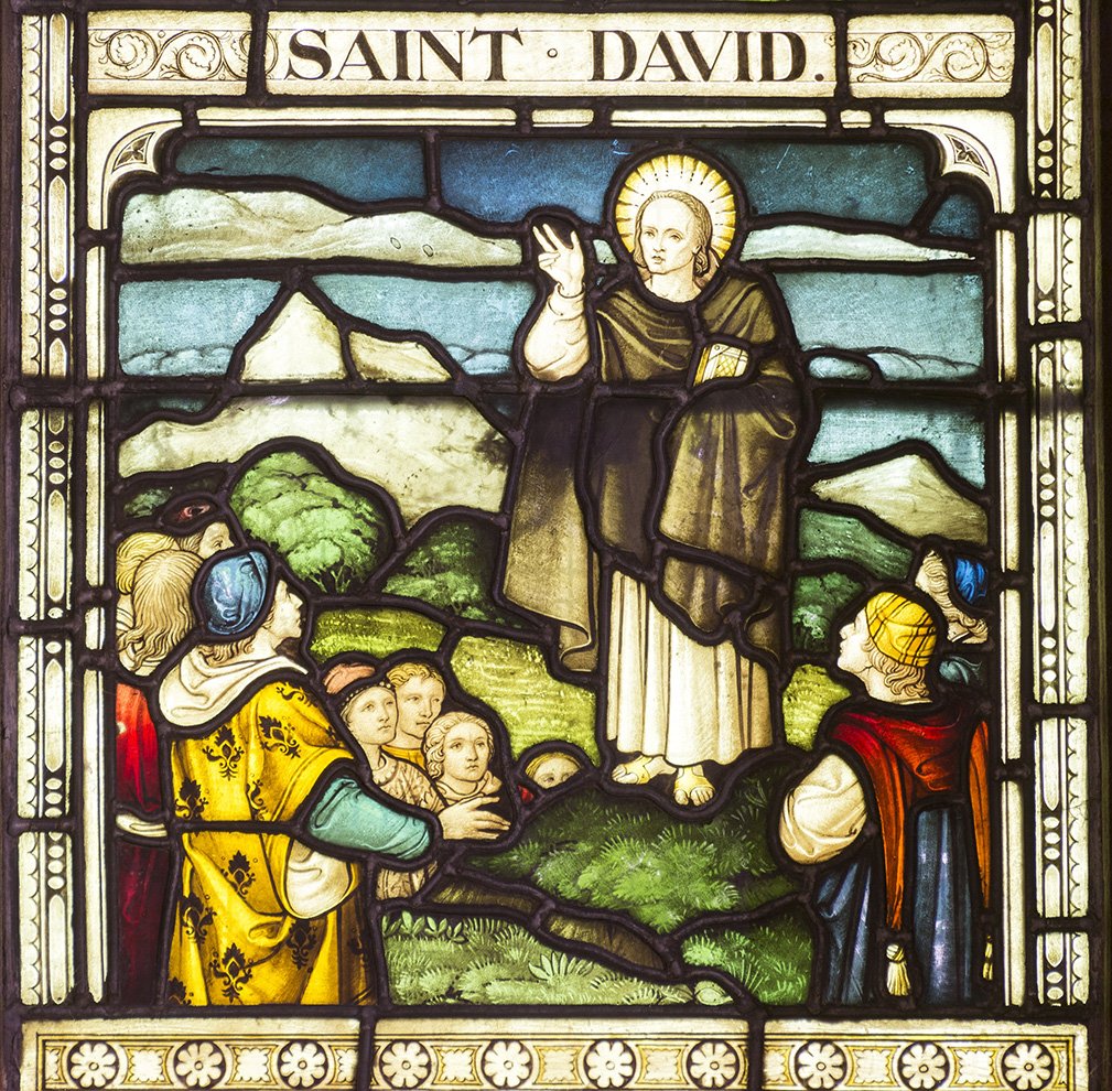 Deze historische figuur, die gewoonlijk de Heilige David wordt genoemd, is de patroonheilige van Wales. Hij was gedurende een groot deel van de zesde eeuw actief in Wales. Hij was de bisschop van Menevia, of Mynyw, in West-Wales. Naast het stichten van vele religieuze gemeenschappen in een groot deel van Zuid-Wales, reisde hij ook naar Dumnonia en zelfs naar Bretagne.