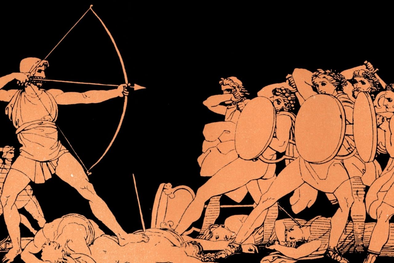 - Odysseus wint de wedstrijd voor de hand van zijn vrouw en richt onmiddellijk de boog op de vrijers, waarbij hij zijn identiteit onthult.